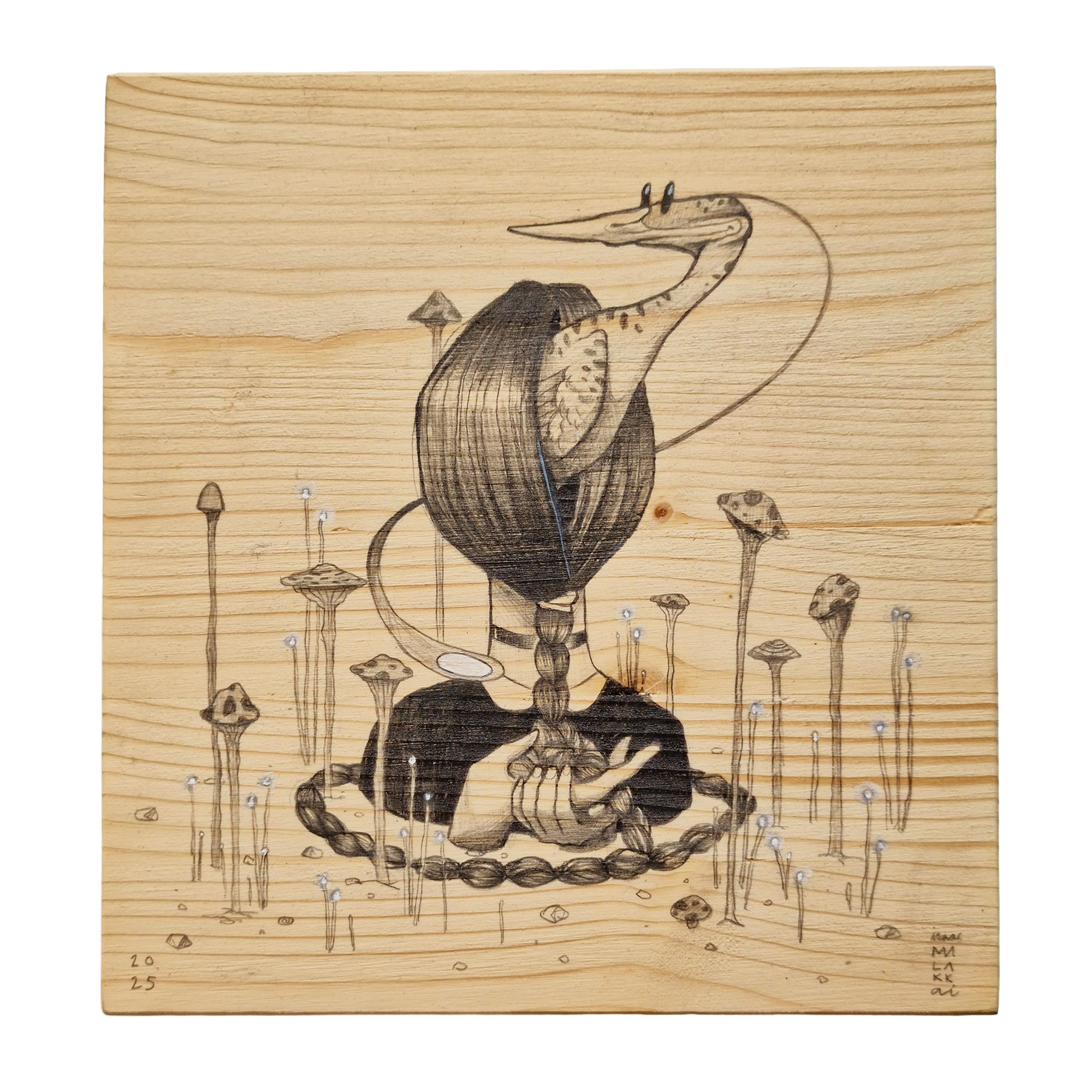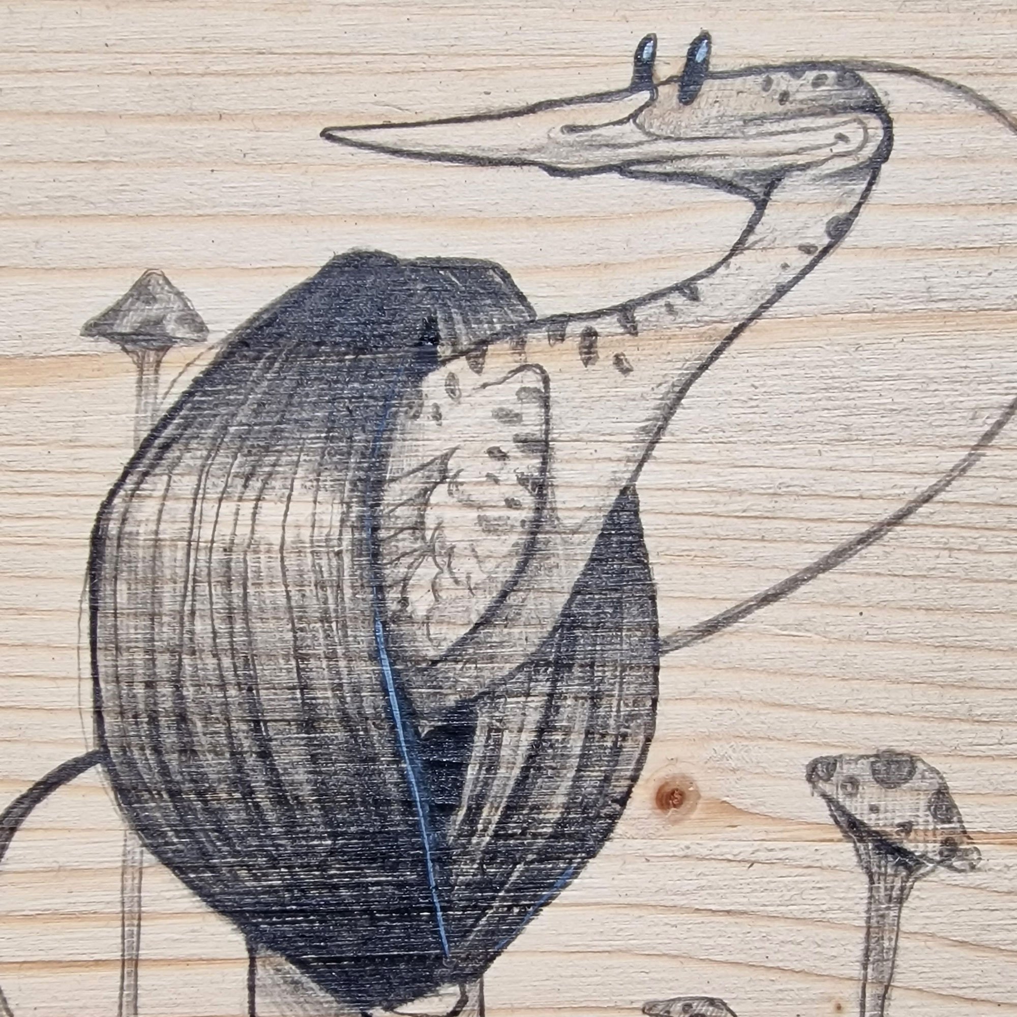 Pencil on wood.